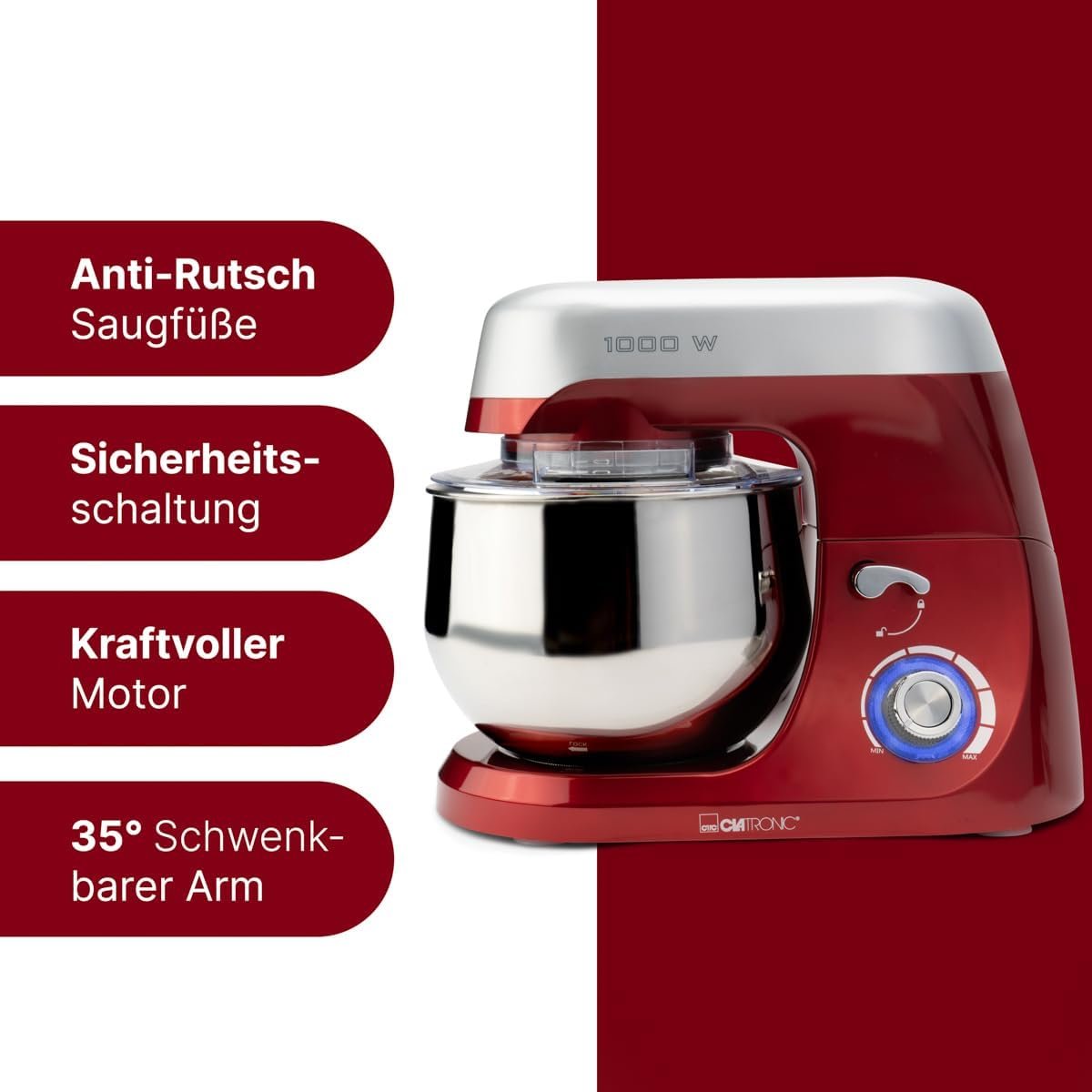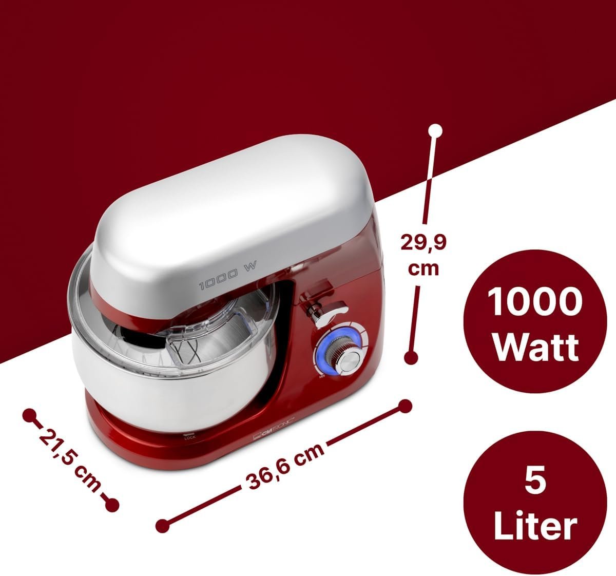 Robot Pétrin Multifonctions 1000W 5L Clatronic KM 3709