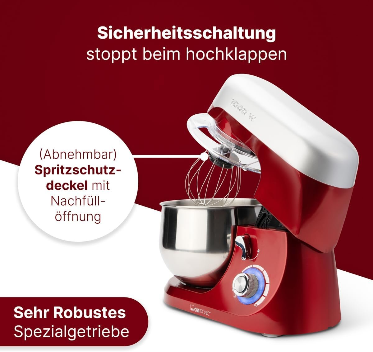 - Pétrin haute performance avec une puissance de 1000 W